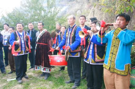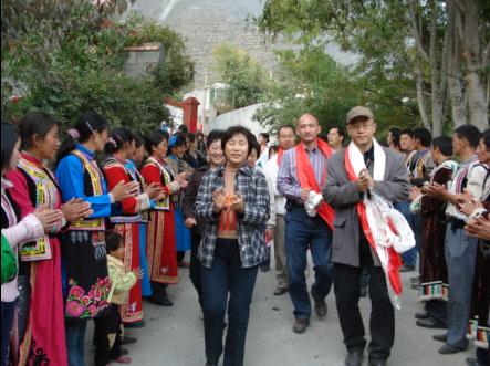 這樣的場景,您一定以為遇上了一個藏羌民族的重大節日。事實上,這是四川省阿壩州茂縣風儀鎮甘青村的村民在以他們的方式,迎接參加沿海地產“健康住宅·母親水窖”首窖開挖儀式的代表們。