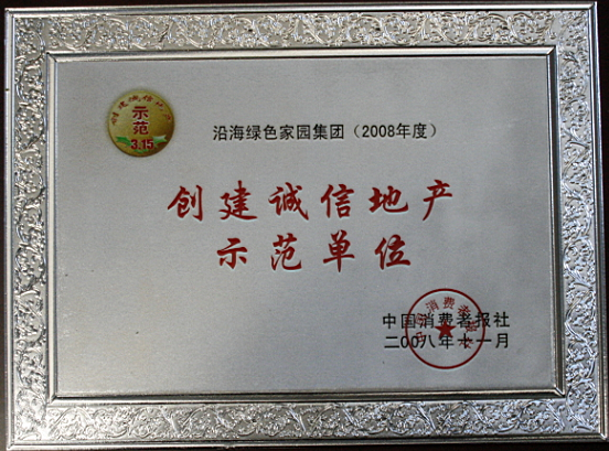 沿海集團(tuán)近日喜獲中國(guó)消費(fèi)者報(bào)2008年年度大獎(jiǎng)——“3·15創(chuàng)建誠(chéng)信地產(chǎn)示范單位”。這表明,沿海多年來恪守的誠(chéng)信經(jīng)營(yíng)、責(zé)任為先的企業(yè)精神得到了權(quán)威機(jī)構(gòu)的認(rèn)可。