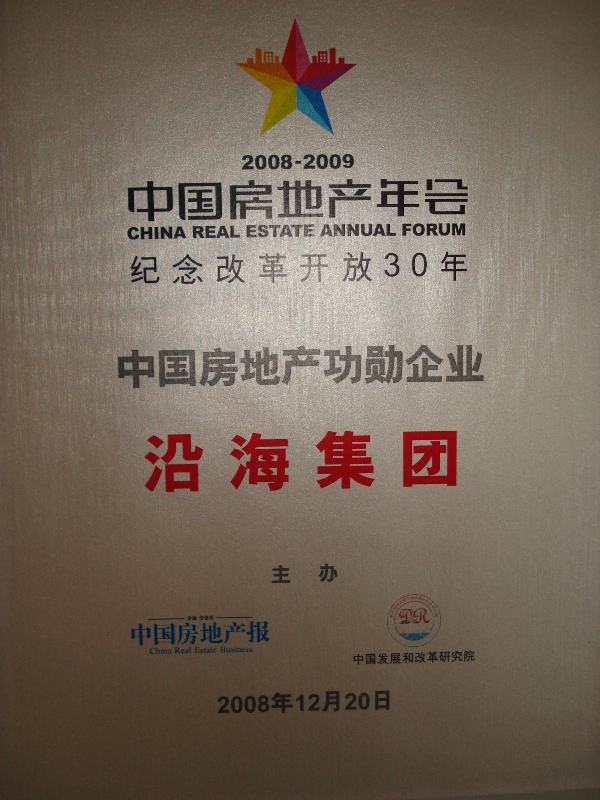 大會如此評價 " 改革開放30年·中國房地產功勛企業 ":它們是中國房地產 " 吃螃蟹的先行者 "  , 讓房地產成為國民支柱夯定的基石;“功勛”二字的分量是對它們最好的褒獎 , 更是一種責任和鞭策;它們秉持敢為天下先的精神 , 在大浪淘沙30年中脫穎而出;它們是中國經濟保值增值的貢獻企業,為和諧社會獻禮;它們是企業公民,社會因它們的存在而更加美好;它們扮演改革者的角色 , 在探索中不斷執著前行 , 在改革開放30周年的歷史中書寫下自己濃墨重彩的一筆。正因為在過往30年為中國房地產行業屢建功勛,包括沿海集團在內的九家企業榮獲“功勛企業”,當然實至名歸。