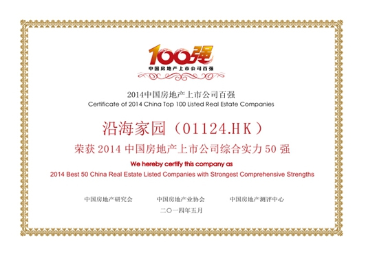 由中國房地產(chǎn)研究會、中國房地產(chǎn)業(yè)協(xié)會與中國房地產(chǎn)測評中心聯(lián)合主辦的2014中國房地產(chǎn)上市公司測評成果發(fā)布會暨上市房企高峰論壇,于5月29日在香港天際100盛大舉行。《2014中國房地產(chǎn)上市公司測評研究報告》以及2014中國房地產(chǎn)上市100強排行榜也新鮮出爐。沿海綠色家園集團憑借出色的綜合實力連續(xù)三年榮登百強榜單,在評比中穩(wěn)居第37名。