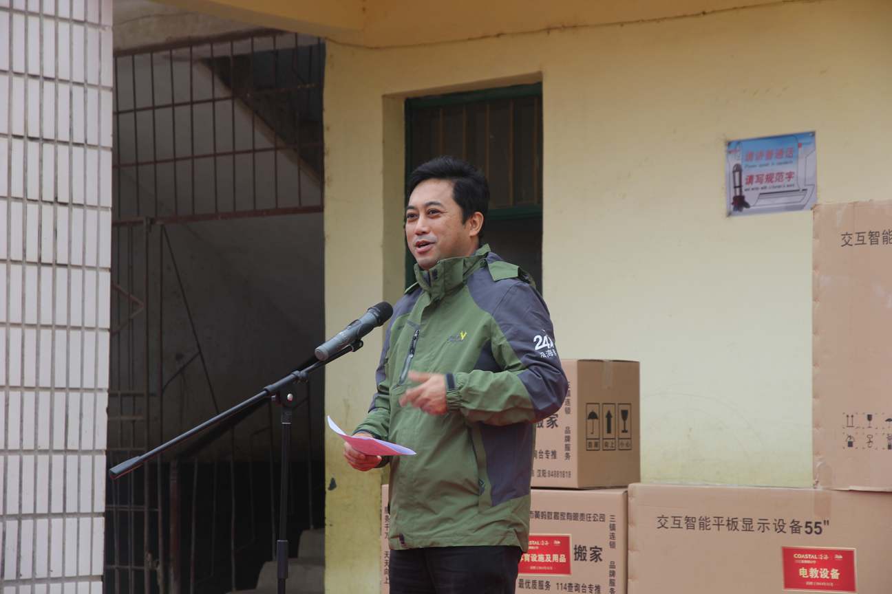 他說,沿海綠色家園集團在成立24周年之際,走進具有革命光榮傳統的老區紅安舉行沿海善行活動,根據學校的發展需要,捐贈的電教設備、移動電腦、班級圖書館、體育設施和器材和文件柜等已經安裝使用,據校方反映,不僅有效地幫助學校改善了教學環境,而且對提高老師的教學水平有很大的促進作用,同時也為同學們創造了更好的學習條件。而今天我們帶來的沿海綠色家園集團的員工、沿海社區的業主和客戶捐贈課外讀物、學習用具、體育用品和衣服等,希望能夠針對性地解決學生知識面狹窄、課余生活不夠豐富、以及部分學生冬衣不夠的問題。