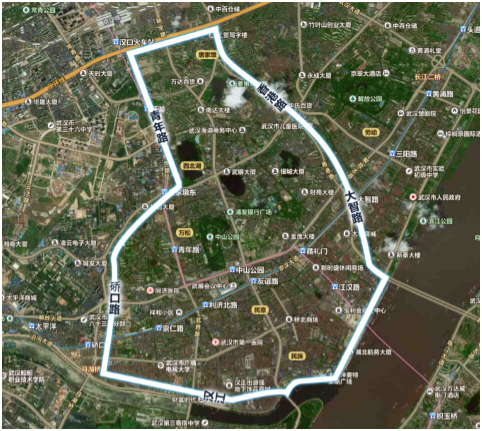 漢口中心板塊輻射范圍:北至二環線,南望漢江,西臨青年路-硚口路,東近香港路-大智路。