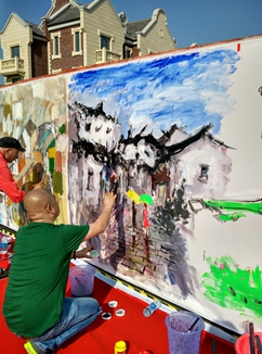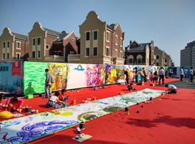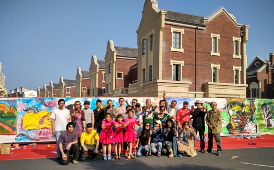 “百米畫卷”活動(dòng)現(xiàn)場(chǎng)家長(zhǎng)和孩子同繪畫卷,其樂(lè)無(wú)窮。參加活動(dòng)的管女士說(shuō),她們一起用筆勾勒了“小城堡”,然后讓孩子涂上水彩顏料,小孩子做得津津有味,動(dòng)手創(chuàng)作的能力也提高了。現(xiàn)場(chǎng)參與繪畫的家長(zhǎng)紛紛表示,這次參加水都南岸的活動(dòng),讓自己的“五一”小長(zhǎng)假有了別樣的家庭之樂(lè)。現(xiàn)場(chǎng)作畫的中外50余位藝術(shù)家更是激情四溢,他們紛紛用手中的畫筆表達(dá)對(duì)水都南岸的感情。眾多畫家表示:“之所以選擇入住水都南岸,就是看中這里天然的環(huán)境和良好的創(chuàng)作空間……”他們共同表示生活在水都南岸,很開心。